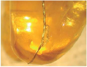 For the study, 52 canals from 20 extracted, lower molars were used, provided by the tooth file of the Specialties’ Maxillofacial Surgery Service, Military Regional Hospital of Guadalajara, Jalisco, in order to conduct electronic measurements with a Raypex 6 device (VSW Munich, Germany). With a diamond disk (SS White-Mexico) clinical crowns were cut in all the molars at the cement enamel junction. Samples were individualized into mesial and vestibular roots. Roots were diagonally cut with respect to the longitudinal axis in order to obtain a flat border with the axis of the tooth’s root and thus achieve access with direct vision into the root canal. Canals were located with DG16 explorer (SS White-USA), and were permeabilized with a K file numbers 10 and 15 (VDW GmbH, Germany). Canal entrances were irrigated with 5.25 sodium hypochlorite (Viarzonit-T Mexico), they were broadened in the cervical third with Gataes-Glidden number 4 burr (VDW GmbH, Germany) Roots (in their middle and apical thirds) were placed in a vertical position in a glass containing alginate (Tropicalgin-Zhermack, Mexico City), to replicate natural oral humidity. Measurements were conducted on the flat surface, following at all times manufacturer’s recommendations.