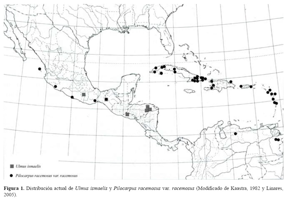 Ulmus ismaelis y Pilocarpus racemosus var. racemosus comparten el espacio con especies como Aphananthe monoica, Bursera simaruba, Brosimum alicastrum, Eugenia breedlovei, Licaria caudata, Guatteria amplifolia, Ficus maxima, Neea psychotrioides, Chamaedorea plumosa, Bunchosia lindeniana, Erythroxylum havanense y Myriocarpa cordifolia, entre otras. Se esperan nuevas localidades de ambas especies a lo largo de Mesoamérica o, al menos, en Guatemala, país que presenta grandes similitudes con el sur de México en cuanto a sus condiciones fisiográficas (Organista et al., 2008).