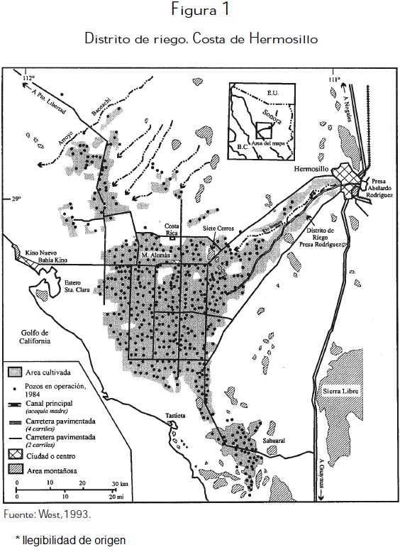 Moreno, José Luis (2000), "Apropiación y sobreexplotación del agua subterránea en la Costa de Hermosillo 1945-2000", versión preliminar, tesis doctoral. [ Links ]