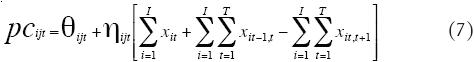 donde θijt y ηijt son la ordenada y el coeficiente de la función que relaciona el precio de la sandía en los mercados;' con la producción total nacional obtenida en el mes t.
