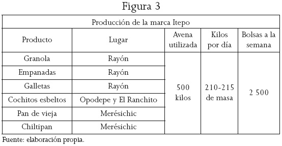 Además de los productos que llevan la marca Itepo, la cooperativa promueve el aprendizaje para la elaboración de otros que son típicos de la cocina sonorense, y estimula a las mujeres que ya los hacían para ayudarlas a sostener la economía doméstica y a encontrar el valor de hacer algo propio. Hasta el momento diez personas hacen garapiñados en las distintas localidades (sobre todo en Santa Margarita), tortillas de manteca, galletas, pan casero, quesos, soya preparada de diferentes maneras y las tradicionales coyotas,10 con los insumos cosechados en las milpas, que pueden estar ubicadas junto a algunas tiendas comunitarias o ser parte de ejidos. Por ahora, el único ejidatario involucrado directamente es Lázaro, secretario del ejido de Rayón. Aunque es escasa, sí existe la participación de las mujeres de los ejidatarios, asociadas a las tiendas comunitarias, que pueden vender y comprar allí su mercancía.