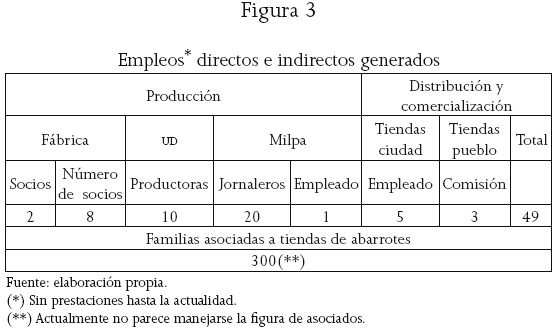 Una de las funciones de las tiendas comunitarias es que sus asociados puedan colocar allí su mercancía, aunque en ocasiones es necesario generar un valor agregado que no siempre es sencillo o factible. En las milpas que tienen relación con el proyecto comunitario han llegado a trabajar 20 hombres. Sólo con uno de ellos se acordó que laborara una jornada de 125 pesos diarios, como lo hacen las mujeres en las fábricas, y de igual manera él recibe el desayuno y la comida. En la zona, los jornaleros agrícolas cobran 200 pesos diarios, pero no tienen un trabajo constante.