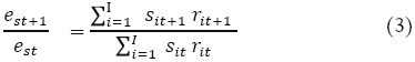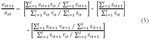 En términos algebraicos, para una región s determinada, las fuentes de crecimiento del empleo de mano de obra se calculan al dividir el nivel de empleo del año t+1 entre el nivel de empleo del año t, como se indica a continuación: