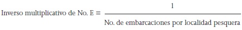 El número aproximado de embarcaciones (No.E); usado como contraste de la agrupación de embarcaciones por localidad, representa la cantidad aproximada de éstas, se proporcionó en las entrevistas. También requirió calcular el inverso multiplicativo: