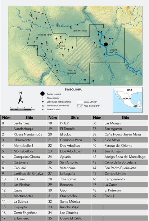 | 34 | Valle de Terán-Suchiapa | San Pedro Buenavista | 35.8 | Habitacional ceremonial |