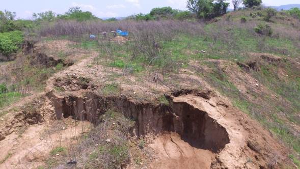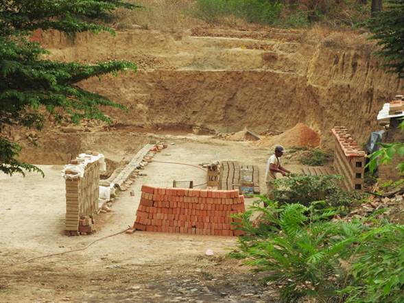 Figura 7 Sitio El Cairo. A la izquierda se observa una ladrillera, y al fondo a la derecha se nota el montículo principal del Grupo Norte