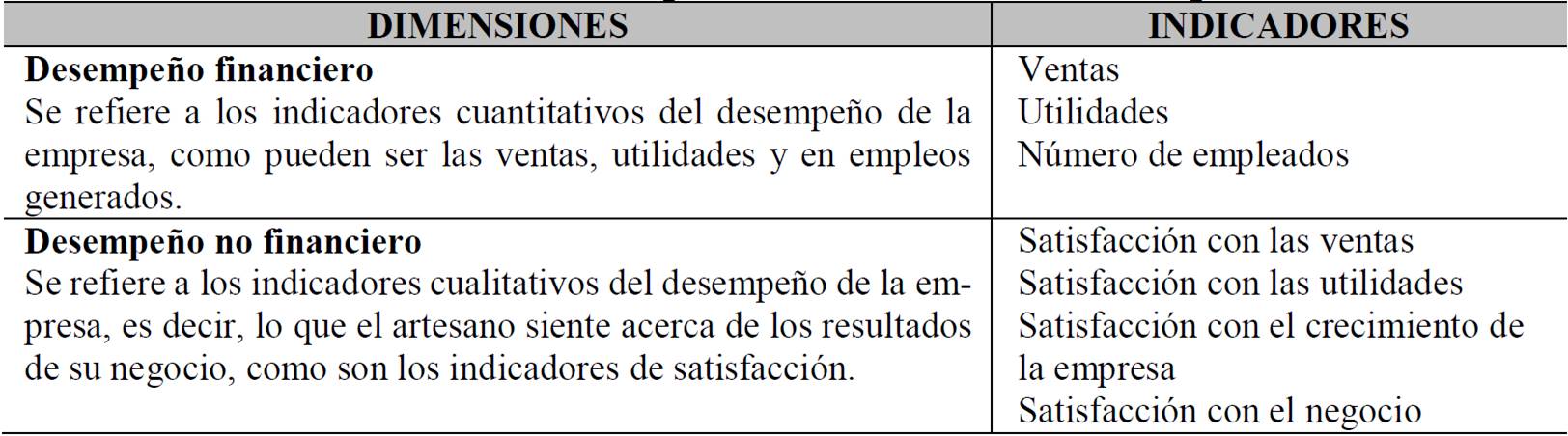 Estudios como el de Venkatraman y Ramanujam (1986) y Laitinen (2002), han tratado de definir el desempeño de la empresa, pero en general no existe acuerdo alguno ya que es un tema complejo, y que depende de los objetivos de ésta. La literatura clasifica lo clasifica en desempeño financiero y no financiero. Como desempeño financiero se han considerado los índices de rentabilidad, los volúmenes de ventas, el crecimiento en ventas, el crecimiento en utilidades, el crecimiento en empleos generados, la participación en el mercado, etc. Pero en la pequeña empresa, aunque no pueda demostrarse grandes retornos de capital, volúmenes de venta, crecimiento o participación del mercado, pueden considerarse otro tipo de indicadores de desempeño no financiero, como la sobrevivencia, la reputación, la imagen pública, la buena voluntad, el compromiso con los empleados y la satisfacción del dueño o gerente con los resultados del negocio, entre otros.