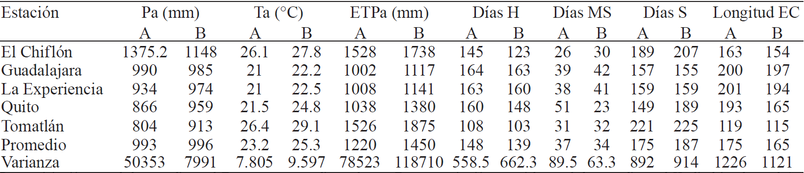 Decreasing of the LEC in the State of Jalisco based on the effects of climate change had already been reported in advance by Ruiz et al. (2000) and was attributed by the authors to the combination of a decrease in the precipitation of potential increased temperature due to the increase of evapotranspiration. In the context ofthis study, the decrease in the LEC explained directly by the decrease in the number of wet days and dry environment and by increasing the number ofdry days, and indirectly by increasing the potential evapotranspiration.