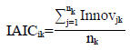 Donde: IAICik= índice de adopción de innovaciones del iésimo productor en la késima categoría; Innov jk= presencia o no de la jésima innovación en la késima categoría; y nk= número total de innovaciones en la késima categoría.