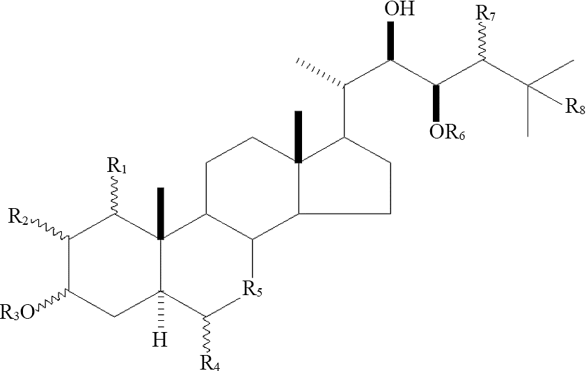 All natural brassinosteroids even now known are byproducts the 5 colestano's polihidroxilados, and they can present from twenty seven to twenty nine carbon atoms. Functional groups that are supposed to be responsible for the biological activity of these compounds, are concentrated in three main fragments colestánico skeleton; these are the A and B rings (cyclic part) and the side chain (Figure 1). With the maturing conjugates brassinosteroids can hydrolyzed to release free brassinosteroids.