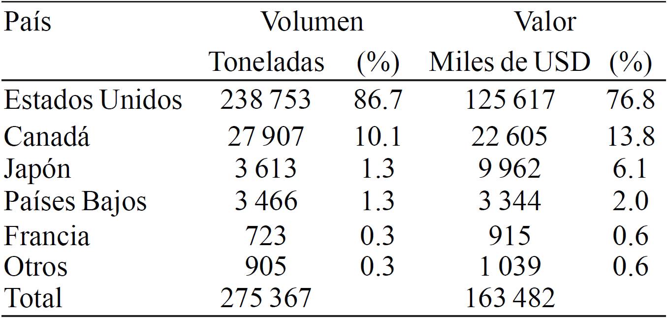 This high concentration of exports is explained by the proximity to the market, prevailing trade agreements, the high number of Hispanics and Asians filing in the first country, as well as changes in eating patterns, as for health has increased the consumption of fresh and natural products, where you can include the mango.