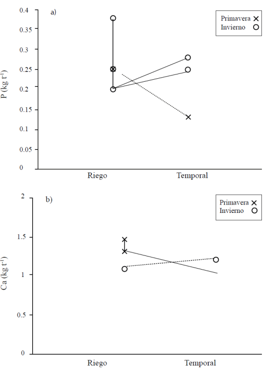 | Riego | 1.3 a | 0.2 a | 1.7 a | 0.7 a | 0.1 a | 0.07 a | 2.3 a | 0.6 a | 0.8 a | 1.1 a | 1.8 a | |