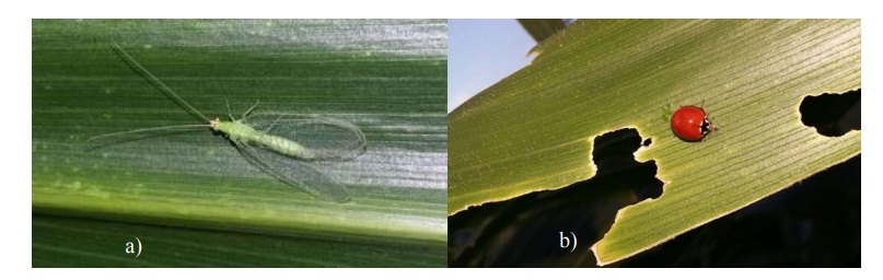 On the other hand, parasitoids have been successful in the control of insect pests such as Telenomus remus Nixon (Hymenoptera: Platygastridae), which is an egg-stage parasitoid (Farhat et al., 2013). In the same way, predatory insects, such as catarinitas (Coleoptera: Coccinellidae), lacewings (Neuroptera: Chrysopidae) (Figure 1) and syrphids (Diptera: Syrphidae) as regulators of plague insect populations (García-Gutiérrez et al., 2012).