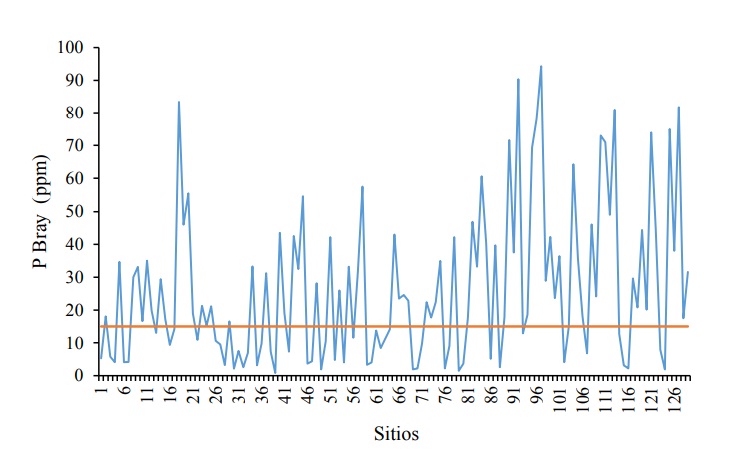 The high variability in the phosphorus content found in the soils is due to the fact that of the total of the producers that fertilize the corn crop, only 43% apply phosphate fertilizers in doses ranging between 6 and 69 kg ha-1.
