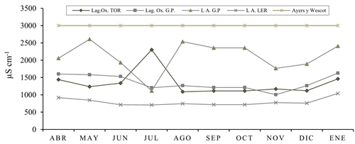 By internal method, chlorides (Cl-) NMX-AA-073-SCFI-2001, sulfates (SO4) NMX-AA-074-SCFI-1981, calcium (Ca), magnesium (Mg), sodium (Na), potassium ( K), copper (Cu), manganese (Mn), iron (Fe), zinc (Zn), lead (Pb) and cadmium (Cd) NMX-AA-051-SCFI-2001. All analyzes were performed in the laboratory of the National Center for Disciplinary Research on Water, Soil, Plant, Atmosphere (CENID RASPA).