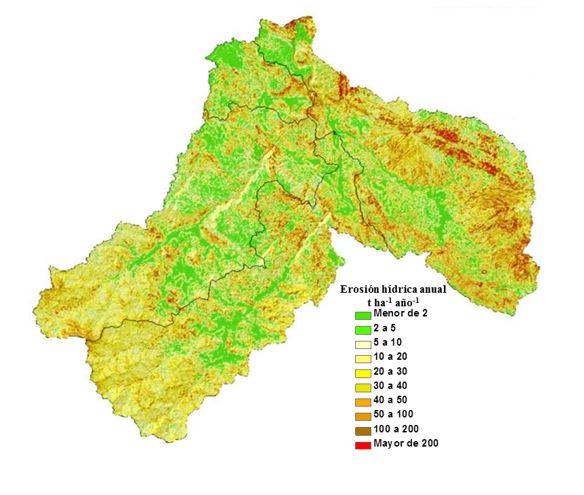 The main objective of this study is to offer a methodological tool that allows determining the spatial distribution of the real rates of laminar erosion and in gutters at the basin scale, which will allow adequate decision-making for soil management and conservation, using remote sensing techniques and integrating the results into a GIS model.
