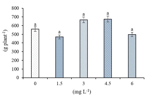 Figure 1 Effect of Se on the yield of chili fruits. Data are shown as mean ± standard deviation (SD) (n= 50). Columns with different letters are significantly different according to Tukey’s test (p< 0.05).