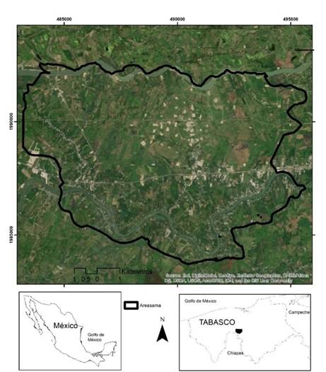 The Samaria oil field (SOF) is located in the center-south of Tabasco, on an area of 8 052 ha, in the municipalities of Cunduacán and Centro (Figure 1). It has a hot humid climate with abundant rainfall in summer, average annual temperature of 25 °C and annual rainfall of 2 000 mm. It is part of the Gulf Coastal Plain physiographic region and the geomorphological landscape of fluvial plain, the rivers Samaria to the north and Carrizal to the south have modeled natural dikes, floodplains and settling basins, on alluvial sediments of the Holocene Quaternary, with heights of 4 to 10 masl. Uses of grassland, banana, cocoa and corn crops, secondary vegetation, oil infrastructure and human settlements prevail (Zavala-Cruz et al., 2003).