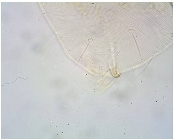 Once the plant structures were selected, they were placed in Ziploc® polyethylene bags with hermetic closure, later, they were transported to the Entomology Laboratory, of the Faculty of Biology, at the Michoacan University of San Nicolás de Hidalgo. Approximately 40 leaves and tender buds were recovered, these were reviewed individually in a stereoscopic microscope, and with the help of dissection needles, females, males, and immatures were separated for mounting on slides through the methodology proposed by Walter and Krantz (2009) with Hoyer’s liquid.