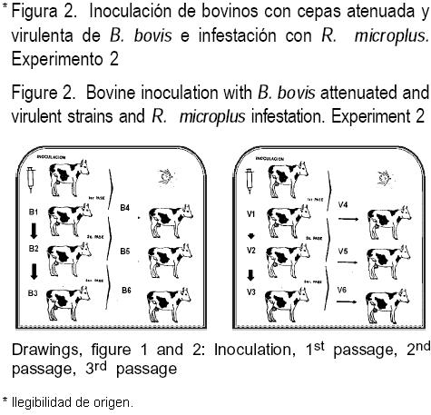 El objetivo de este estudio fue evaluar si las cepas vacunales BIS y BOR son transmitidas por garrapatas después de tres pases en bovinos susceptibles, y determinar si existe reversión a la virulencia de estas cepas después de los pases sucesivos por bovinos sin su regreso al cultivo in vitro de donde se originaron.