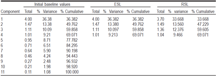 ESL= Extraction sums of squared loading.