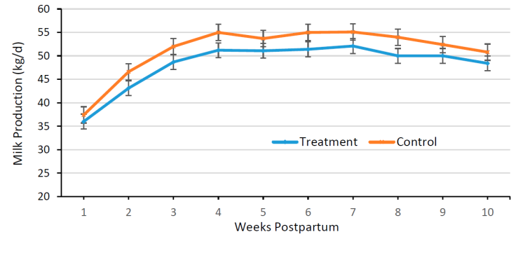 Figure 1: Average weekly milk production in treatment and control groups