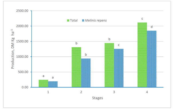 | Melinis repens | 26.67a | 29.27a | 28.86a | 35.53b |