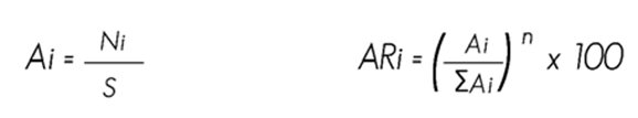 = Frecuencia relativa de la especie i respecto a la frecuencia total |