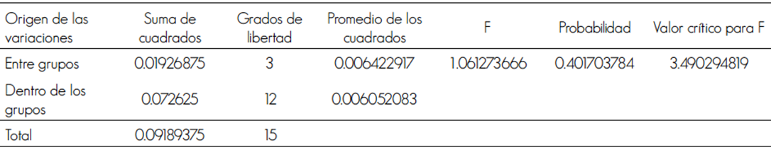 A través de análisis de varianza se demostró la diferencia entre las unidades de muestreo; mediante el apoyo del paquete estadístico SPSS versión 20.0 (SPSS, 2011).