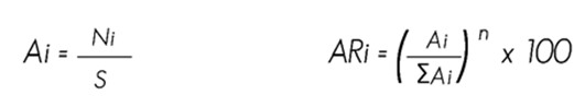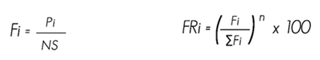= Relativa frequency of the i species with respect to total frequency |