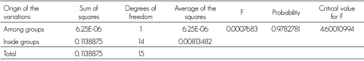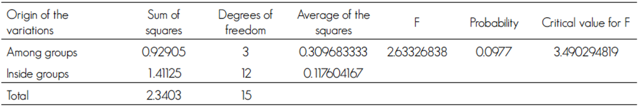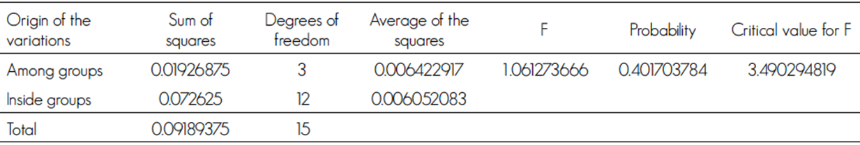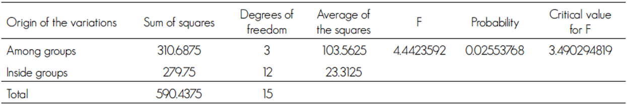 The Analysis of Variance showed the difference between the sampling units, through the support of the statistical package SPSS 20.0 version (SPSS, 2011).