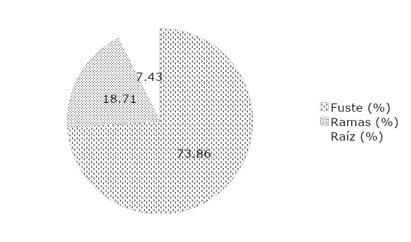 Several investigations have been carried out to estimate the carbon accumulated by adjusting allometric equations for different species, among which those carried out by Díaz et al. (2007) who adjusted a two-parameter equation in which they used as a predictor variable the normal diameter to estimate carbon in Pinus patula Schiede ex Schltdl. & Cham., concluded that the carbon stored in the woodland components is distributed in the stem with 78.82 %, and in the branches and foliage component with 16.11 %. This distribution of carbon stored in the components is similar to that obtained in the plantation of G. arborea studied, since the stem stores 73.86 % and foliage 18.71 %.