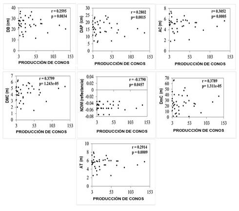 Asociación entre la producción de conos y las variables dasométricas