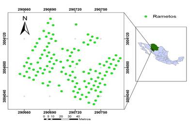 En consecuencia, el objetivo de este estudio fue modelar, desde una perspectiva geoespacial, la producción de conos y las variables dasométricas del huerto clonal de Pinus arizonica Engelm. en el norte de México. Se hipotetiza que la distribución de la producción de conos y las variables dasométricas siguen un patrón espacial no aleatorio, y que la producción de conos está influenciada por variables tanto dasométricas como físicas.