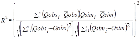 Expresa la fortaleza de asociación entre dos variables. Cuando R 2 = 1 indica una relación positiva perfecta entre dos variables, pero no es un garante automático de una buena simulación, ya que es insensible a adiciones y a diferencias proporcionales entre el tiempo observado y predicho.