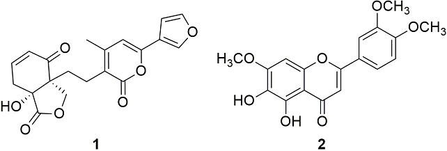 Table 1 Quantification of amarissinin A (1) and 5,6-dihydroxy-7,3',4'-trimethoxyflavone (2) by HPLC-DAD (at 330 nm) in the total extract from Salvia urica.