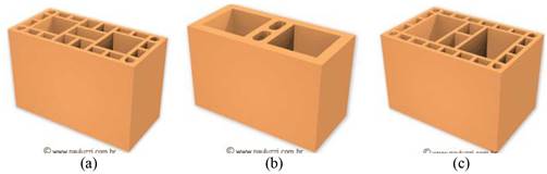 Figura 1 Bloques cerámicos portantes utilizados. (a) B1. (b) B2. (c) B3.