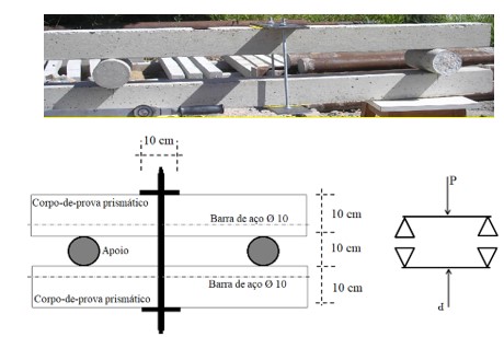 Foi definida a forma de carregamento dos corpos-de-prova prismáticos, que teriam as seguintes situações: