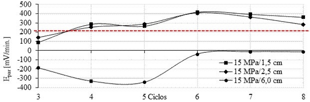 Aún no existe una normativa que establezca un rango fijo de valores de Igal y Epar para caracterizar el estado activo del acero en el hormigón. Por tanto, no es el valor absoluto lo que se debe considerar, sino la variación de sus valores en el tiempo (Raupach y Schiessl, 2001; Araújo et al., 2013).
