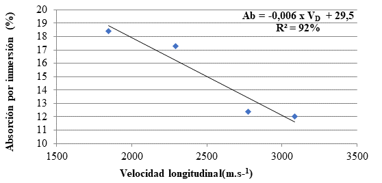 Figura 3 Modelo de regresión entre absorción de inmersión y velocidad longitudinal.