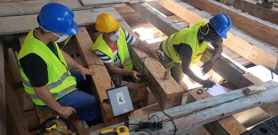 Con el propósito de que la intervención sobre las estructuras de madera sean lo menos invasiva posibles, la aplicación de ensayos de velocidad de pulso ultrasónico (VPU), resistografía, extracción de tornillo o penetrómetro, permiten obtener a partir de mediciones in-situ resultados fiables para la determinación del estado de conservación de elementos estructurales de madera. La aplicación de los mismos posibilita la estimación de parámetros como la densidad, la tensión de rotura y el módulo de elasticidad para su reaprovechamiento o sustitución de acuerdo con los requisitos del proyecto. Aunque el empleo de estas técnicas ofrece ventajas en cuanto a seguridad de clasificación basado en sus resultados, la evaluación visual de la madera, como criterio de aceptación, se mantiene en la actualidad como el método más empleado, debido fundamentalmente a su bajo coste en comparación con el empleo de equipamientos, y la facilidad que ofrece la madera de mostrar su características y lesiones en la superficie de la misma.