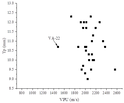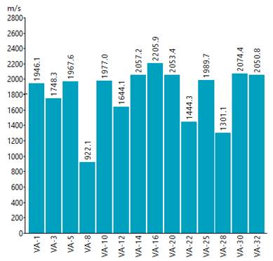 VPU= velocidad de pulso ultrasónico medida; m/s