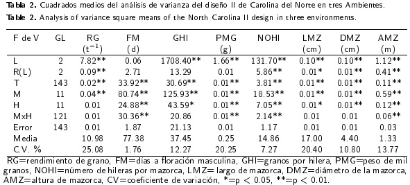 Los métodos de cruzamiento controlados, como los dialélicos de Griffing (Griffing 1956) y el diseño de apareamiento de Carolina del Norte II (Comstock y Robinson 1952) son eficientes para la identificación de cruzas y padres superiores. El diseño de Carolina del Norte II es de apareamiento factorial donde cada miembro de un grupo de machos se aparea con cada miembro del grupo de las hembras, además de que es útil para la estimación de la variación genética, la aptitud combinatoria y el grado de dominancia (Stuber 1980). En este diseño, el cuadrado medio para machos y el de hembras proporcionan estimaciones directas de la ACG para machos y hembras, respectivamente, mientras que la interacción macho x hembra es una estimación de la ACE (Hallauer y Miranda, 1988). Con base en lo anterior, el objetivo del trabajo fue evaluar y determinar la heterosis de cruzas simples de maíz para grano por medio del diseño de Carolina del Norte II.