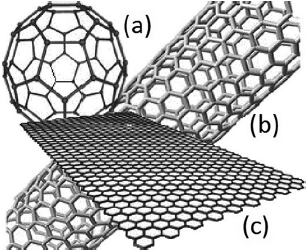 El carbono es un elemento sorprendente, gracias a su estructura molecular puede enlazarse con otros átomos y unirse entre sí en diversas formas alotrópicas. El número atómico del carbono es seis, esto es, tiene seis protones y seis electrones distribuidos de tal manera que cuatro electrones pueden aparearse con otros átomos formando enlaces covalentes. Entre las distintas formas alotrópicas del carbono, las más conocidas son: el grafito, el diamante y el carbono amorfo, pero en las últimas décadas se ha encontrado la manera de generar en el laboratorio, de forma controlada, nuevas formas de carbono con dimensiones nanométricas. A estas formas alotrópicas se les denomina generalmente nanoestructuras de carbono, y suelen clasificarse de acuerdo con sus dimensiones características: fulereno (cero-dimensional o 0D), nanotubo (unidimensional o 1D) y grafeno (bidimensional o 2D) (ver Figura 1).