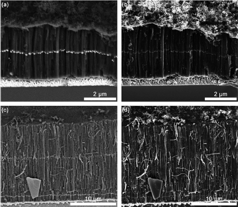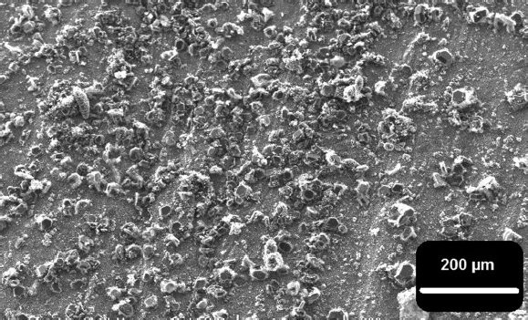 Para la obtención de estos arreglos de MWCNT’s también se usan sustratos metálicos tratados termoquímicamente. Al igual que el tratamiento anterior, el sustrato es acero al carbono[8,9], pero con una mezcla diferente: viruta de aluminio en vez de dióxido de silicio (SiO2). Este tratamiento termoquímico genera microcristales de óxido de aluminio (Figura 13). Después del tratamiento, los sustratos metálicos son sometidos al crecimiento de MWCNT’s por medio del depósito químico de vapor (CVD). Mostramos la diferencia de los microcristales de óxido de aluminio con y sin crecimiento de MWCNT’s (Figura 14).