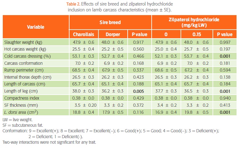 Therefore, the objective of this research was to evaluate the effect of ZH on the carcass characteristics of terminal Katahdin x Charollais and Katahdin x Dorper crosses to provide alternatives for increasing meat production.