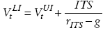 en la que rITS es la tasa de descuento que corresponde utilizar para los ITS. Como la deuda crece a una tasa constante g es posible en este caso establecer que la tasa de descuento apropiada para el beneficio tributario de la deuda es rITS = rB.9 En esas condiciones y considerando la existencia de impuestos personales como los descritos en Miller (1977) para los dividendos (TE) y para las rentas por intereses (TD), se obtiene la siguiente relación entre el valor de la empresa con y sin deuda: