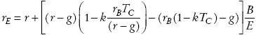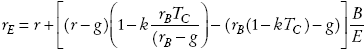Si además en este caso suponemos que la tasa de impuestos personales sobre los dividendos es igual a la tasa de impuesto sobre los intereses que genera la deuda al acreedor, entonces el paréntesis en (15) se transforma en Tg= TC rB /r y la tasa de costo de capital patrimonial presentada en (14) se convierte en: