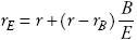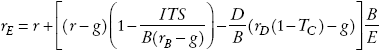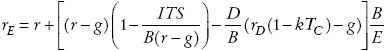 En términos de las consecuencias que esto tiene para el rendimiento que exigen los accionistas en este modelo con crecimiento en la deuda, el Apéndice 1 muestra que si estamos en el caso en que TD = TE , entonces la ecuación que representa el rendimiento exigido por los accionistas (rE) será: