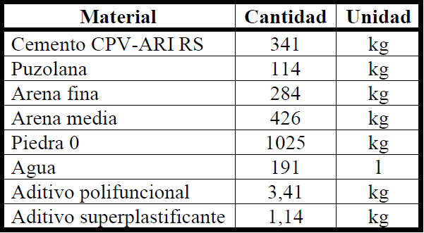 En el control tecnológico realizado en una obra, siguiendo el procedimento establecido por la NBR 12655 (ABNT, 2015), la resistencia a la compresión (fc) de tres mezclas de volumen de 8m3 fué inferior al fck de 40 MPa, especificado por el proyectista. Como la obra presenta impedimentos para la extracción de núcleos, visto que la estructura es de acero relleno con concreto armado, fué realizado un estudio al respecto de la evolución de la resistencia del concreto, de modo de auxiliar en el chequeo de la seguridad estructural de la obra. Cabe resaltar que este análisis es complementario, y debe ser realizado en conjunto con otras verificaciones, como revisión del proyecto estructural considerando fc obtenido en el ensayo y la realización de ensayos no destructivos. La composición del concreto estudiado está presentada en la Tabla 2.